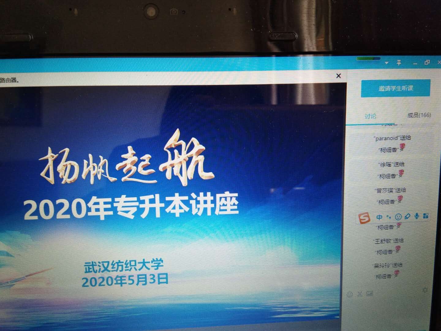 学院为了扩大学院影响,提高学院知名度和生源质量,于5月3日依托腾讯课堂为武汉城市职业学院的师生们作了专场招生宣讲会,参加的师生有300余人。