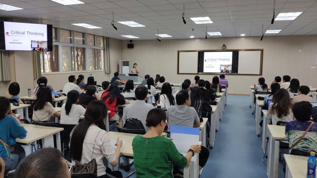 2019年9月26下午,WilliamHill中文举办了三位教师暑期赴美国乔治城大学研修成果分享汇报会。此次研修是在学校党委教师工作部的大力支持下,由外研社与美国乔治城大学联合举办,历时三周。本次研修的课程内容聚焦EFL教学,贯穿交际教学法、跨文化能力培养、思辨能力培养、语言测评四大主线,旨在提升教师教学理论素养和研究意识,增强教学设计与教学实践能力,研修之余,老师们也深入美国社会体验当地的文化,是一场“浸入式”的学习文化之旅。