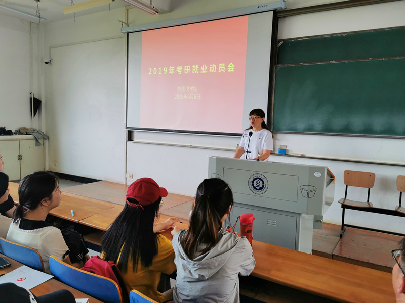 动员会上,谭院长对2016级学生过去三年的在校表现给予了充分肯定。她谈到,在过去三年里,2016级外院学子奋勇拼搏,积极有为,在专业成绩、学科竞赛、综合发展等方面均取得了可喜的成果,令全院老师感到欣慰。在大四学年开启之际,同学们要继续顶住压力,保持住积极进取的动力,在考研、求职、留学等艰苦征程中奋勇向前,学院会积极调动教师资源、企业资源,一如既往地给予全体2016级学生最大的支持和帮助。