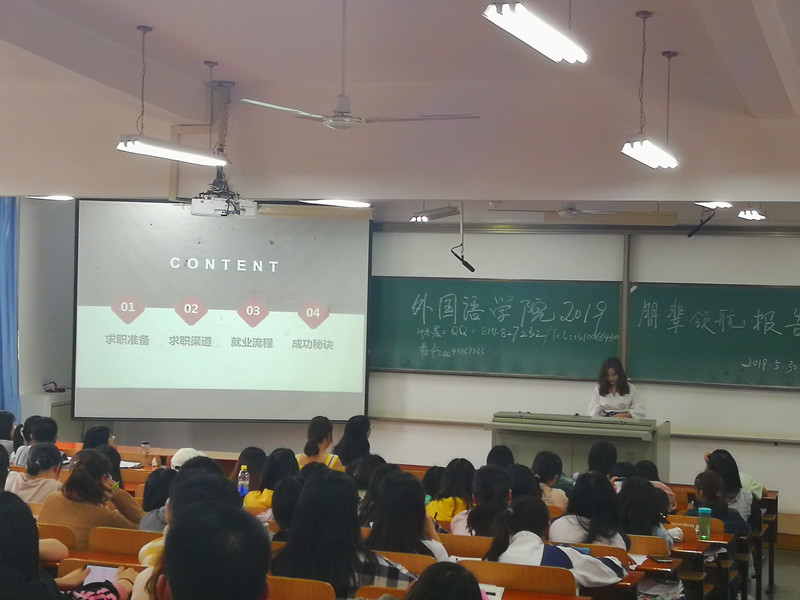 先后在智联招聘、深圳宝视佳任职的英语11501班刘静则从求职准备、求职渠道到就业流程,详细地向学弟学妹们讲述自己的求职经验。
