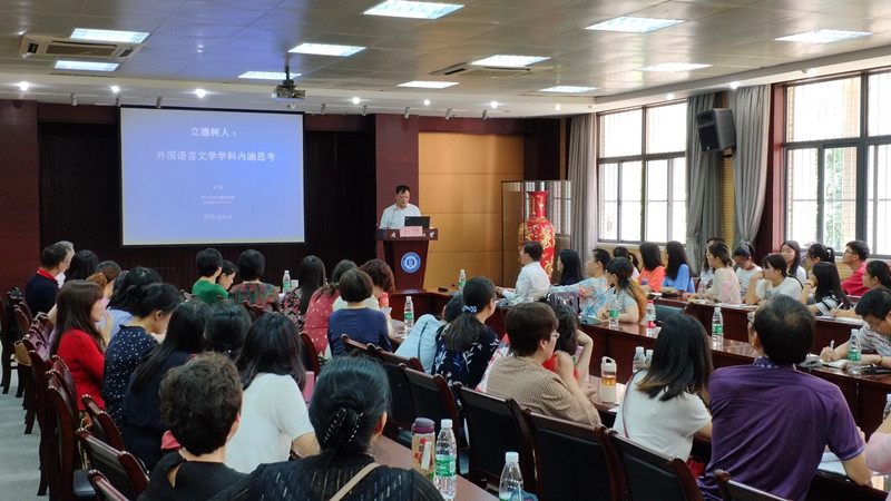 5月24日上午,原四川大学副校长、博士生导师石坚教授做客我校WilliamHill中文,为学院师生作了题为“立德树人:外国语言文学学科内涵思考”的报告。学院百余名师生慕名前来聆听,报告会由WilliamHill中文院长谭燕保教授主持。