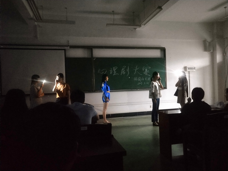 本次心理剧比赛围绕“手机”、“未来生活”等主题展开,来自学院2018级英语专业、商务英语专业的三支队伍为大家进行了精彩的情景剧展示。三组作品从多个侧面展现了当下大学生由于过度依赖手机产生的一系列学习、生活方面的问题。英语11801班以戏剧化的手法细致刻画了学生从过度沉迷手机游戏,到深尝学业荒废、痛失友情的苦果,再到最终大家真情帮助、回归美好大学生活的坎坷心路历程。英语11802班则以多种表现形式,新颖的视角,将手机与未来世界连接,在与“未来的我”交谈中幡然醒悟,从而找回现在的我。商英11801班以目前大热的手机网红现象为切入点,展示了在虚拟数据中逐渐迷失的大学生,最终在同学的点滴关怀下回归正常生活轨迹的故事。所有的作品都以诙谐的语言、灵动的表演和深刻的思考赢得了现场观众的一致好评。
