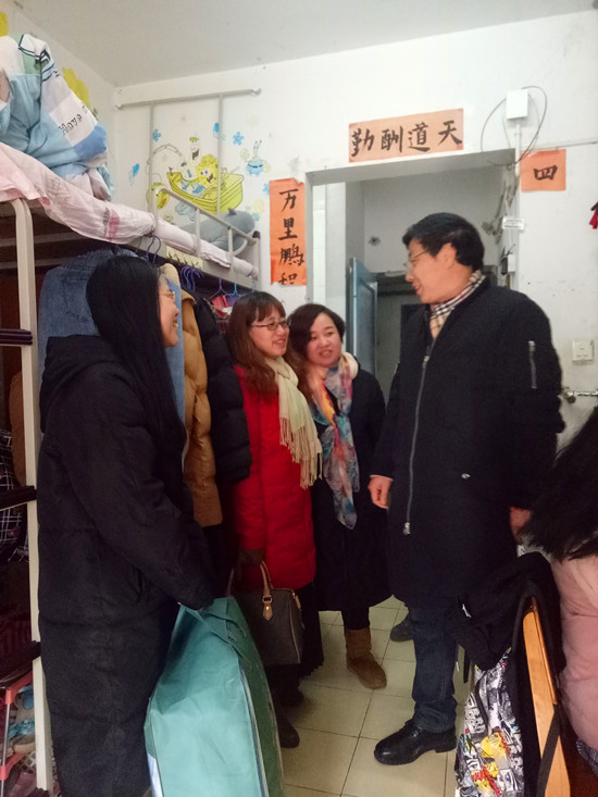 1月3日下午,WilliamHill中文党委书记胡中原、院长谭燕保、副书记王芳等一行来到学院学生寝室,为家庭经济困难学生送上冬日祝福,让学生们感受到学院大家庭的温暖。