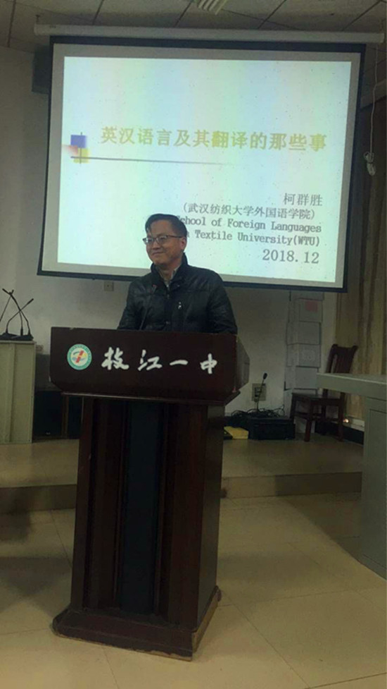 会后,副院长柯群胜教授为枝江一中的同学们送去了一场题为“英汉语言及其翻译的那些事”的学术报告,同时,枝江一中的师生们一同观看了williamhill中国六十周年校庆纪录片。