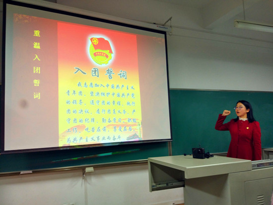 本次团课教育内容主要包括学习共青团知识、了解共青团下发的新文件和新政策、观看摩拜单车创始人事迹的视频、重温入团誓词四个环节,旨在为17级新生普及共青团创建的背景、目的、过程、内容及意义等相关知识。