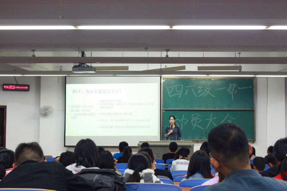 首先,主持人英语11602班朱倩同学向与会者介绍和讲解“四六级一帮一”活动内容,并预祝所有报考参加12月份CET四六级考试的学生取得理想的成绩。