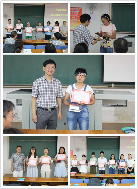 会上,还对暑期举办的《致新生一封信》翻译比赛和《英语美文 点赞家乡》比赛的优胜者进行了颁奖。
