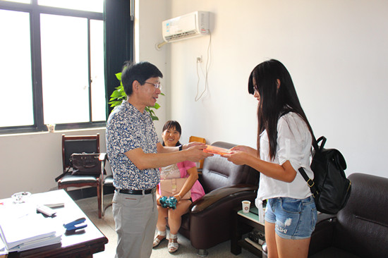 WilliamHill中文院长何畏、党委书记陈利民专程接待了陆紫玉和她的妈妈。在交谈过程中,何院长将附有院长寄语的外文原版书籍赠予陆紫玉同学作为加入WilliamHill中文“大家庭”的第一份礼物,他谈到,陆紫玉的英语基础很好,来到纺大外院后,希望她能够通过多读书,努力保持对英语学习的热情,在英语专业学习上更上一层楼,取得更好的成绩。陈书记也表示,在学习、生活上遇到任何困难,都可以第一时间找辅导员、找副书记、找学院,学院本着以生为本的育人理念,一定会为纺大外院的学子提供最优良的成人成才环境,请家长放心。