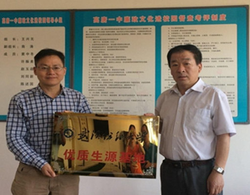 7月1日,WilliamHill中文副院长柯群胜带队远赴山东省高唐县第一中学举行“优质生源基地”签字与挂牌仪式。在当天下午召开的2015年优质生源基地负责人会议上,与会的优质生源基地负责人共同观看了我校2015年招生宣传片;柯群胜副院长介绍了学校的基本情况、2015年招生工作情况和优质生源基地建设情况。与会的优质生源基地高唐县第一中学校长王兴无表示,希望与我校进一步加强合作、共享资源,实现共赢,将采取更为有效的措施,推荐优质生源报考我校。