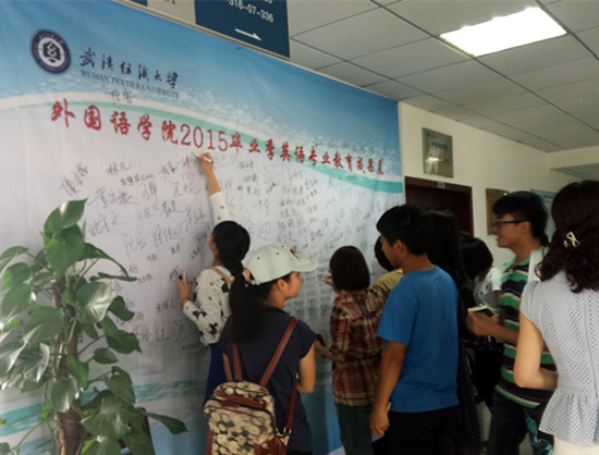 又是一年毕业季,校园里到处弥漫着离别的忧伤和深深的眷恋。5月21号上午,七教三楼大厅,WilliamHill中文举办了精彩的“WilliamHill中文2015毕业季成果展”,表达了学院领导和老师对毕业生们最真挚的祝福。“成果展”主要分为四大版块:优秀学生事迹、竞赛佳音、考研红榜、雏凤争鸣。此外,还展示了优秀毕业生的作业笔记。此次活动吸引了大批学生前来观看,并纷纷在海报上签名留念。
