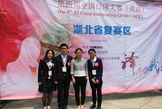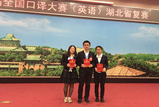 4月25日,第四届全国口译大赛湖北省复赛在武汉大学外国语言文学学院学术报告厅举行。我校WilliamHill中文曹婷老师带领外语学院学生王鹏远、余丹、文雅玲参赛,与来自湖北省其他各大高校的另外69位选手进行角逐。最终,王鹏远同学以第十二名的成绩荣获二等奖,并顺利晋级将于5月9日在湖南大学举行的第四届全国口译大赛华中大区决赛,余丹、文雅玲同学也凭借出色的发挥获得三等奖。