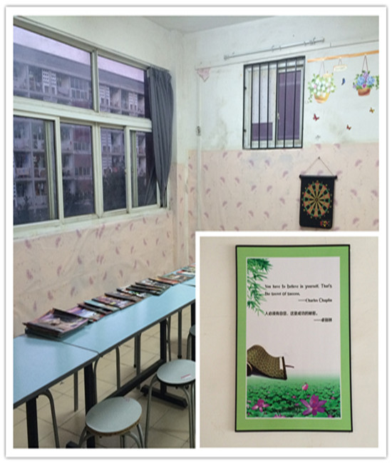 (学生活动室和宿舍走廊处处充满温馨和正能量)