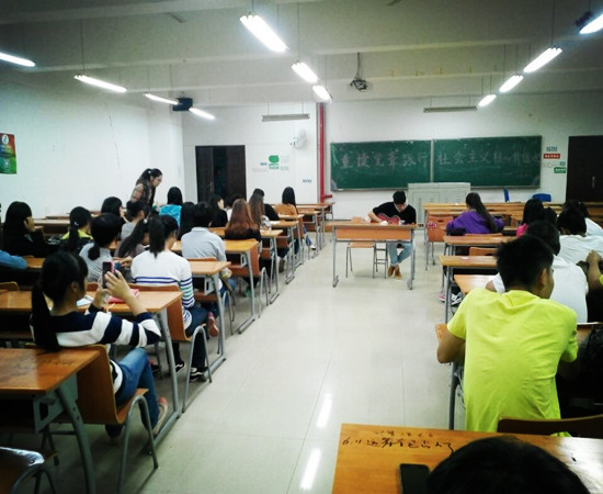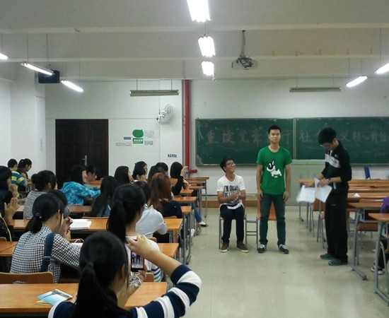 首先,班级团支书潘杏花向同学们介绍了社会主义核心价值观的主要内容,使同学们充分理解了其中“富强、民主、文明、和谐、自由、平等、公正、法治、爱国、敬业、诚信、友善”等各项含义,以激励他们在今后的学习生活中主动加强自身建设。其次,此次班会也号召学生在成长成才的过程中,养成良好的道德行为规范,既要做中华传统美德的传承者,也要做社会主义核心价值观的践行者。接着,同学们以诗歌朗诵、歌曲演唱、以及小品表演等方式分享了自己对社会主义核心价值观的感想。最后,为了响应学校“争做‘四有’教师•‘十大美语、十条禁语’”征集活动,我院学子也利用主题班会的时间,以寝室征集、班级集中座谈和心理情景剧等多种形式,开展教师用语征集讨论,形成包括“You earn your body”“一息若存,希望不灭”;“你不认真学习可以,但不要影响其他同学”等具有本院特色的教师“十大美语、十条禁语”。