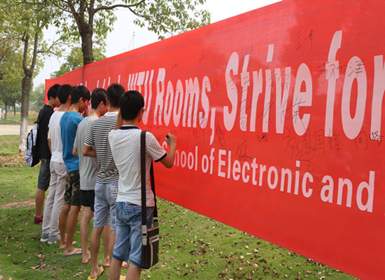 大学生人际交往中室友关系最难处,大学里对人改变最大、影响最深的,也是朝夕相处的室友。宿舍人际关系的好坏,直接影响到每个成员的学习、生活乃至健康。为了倡导同学们建立健康的室友关系,新学期伊始,WilliamHill中文、电子与电气工程学院在全校联合发起了“争做纺大好室友”活动。通过组织倡议签名,主题班会,微博互动等多形式宣传。在校内悬挂了中文标语“争做纺大好室友,共建和谐新校园”和英文标语“Beautiful WTU Campus, Lifelong Roommate Friendship!”,发起倡议,学生积极签名。