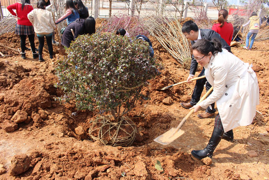 在活动现场,老师们躬身示范,对挖窝、放苗、培土、浇水等环节进行耐心讲解并示范,同学们则认真操作各个环节。尽管部分同学来自大城市,从未参与过这样的活动,但他们依然不畏辛苦,不怕脏,不怕累,精心种下每一棵树。经过两个多小时的努力,成功种植了所有树苗。