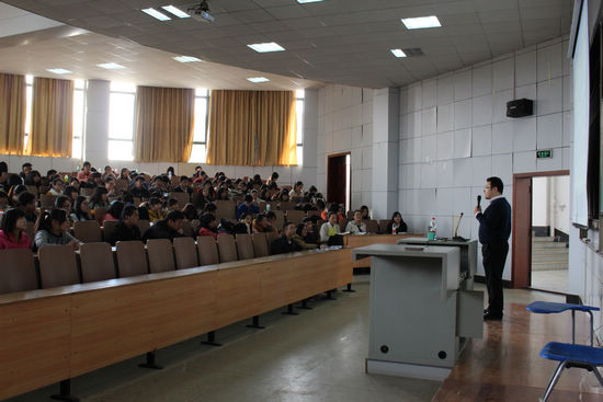 2014年3月21日下午,我校王栋教授,在阳光校区07-T102教室举办了一场题为“The Days Pursue Study Abroad”的海外求学主题讲座。来自外语、经济、会计等专业的300多名学生聆听了此次讲座。外语学院分党委副书记张鹏主持了讲座。