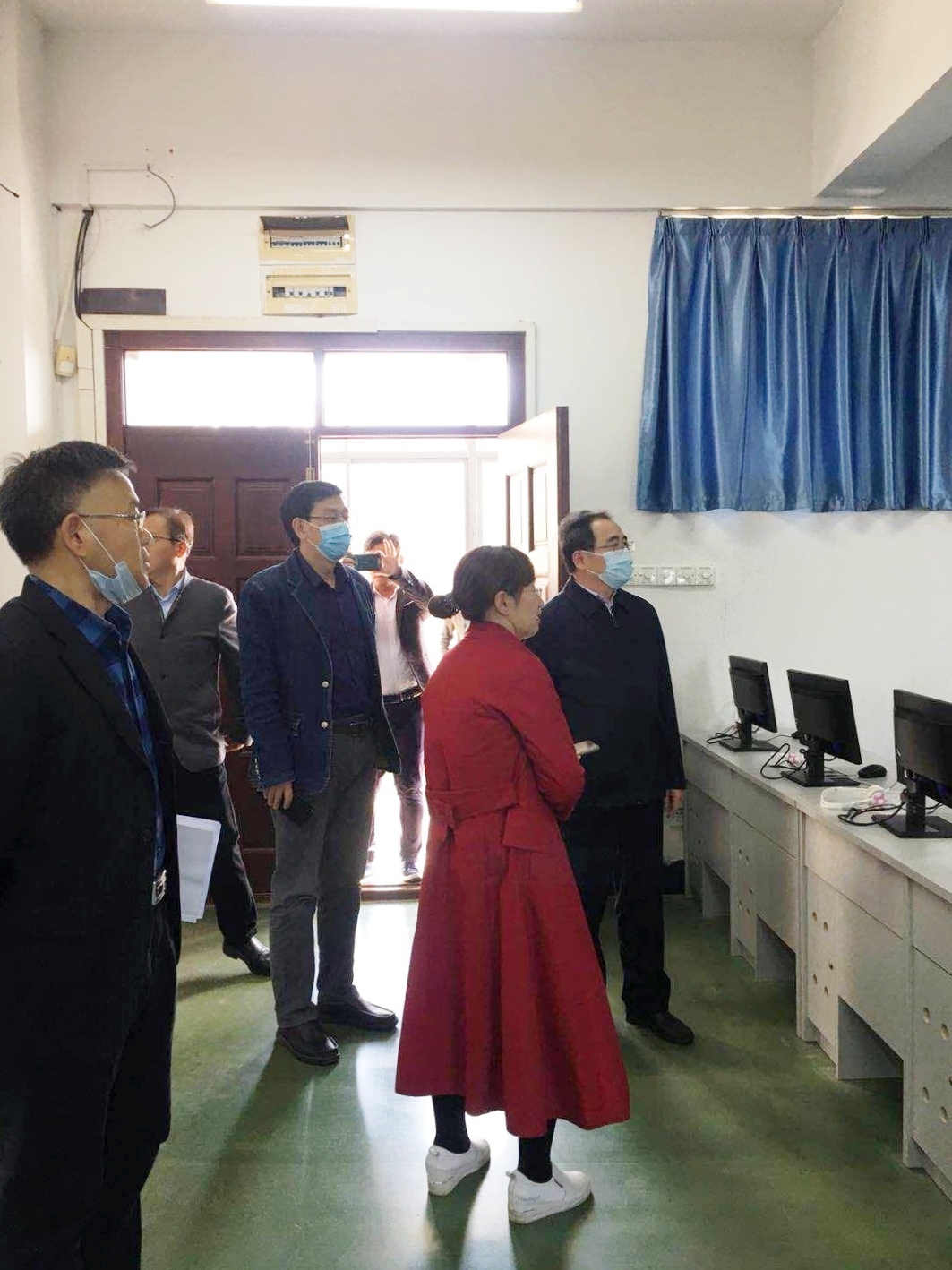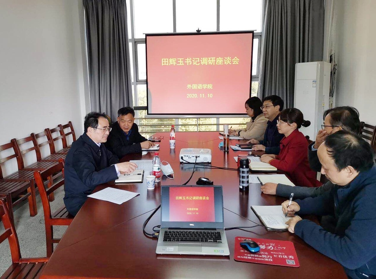 会前,田辉玉实地查看了学院同声传译、商务英语和翻译实训室,走访了大学生英语自主学习室,了解了学院办公场地和基本设施。