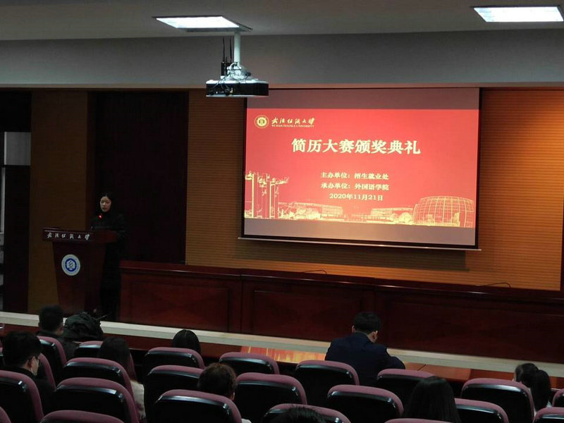 典礼开始,曾文静副处长代表主办方向获奖同学表示祝贺,同时勉励大家珍惜崇尚荣誉,直面挑战机遇,勇于展现自我。紧接着,5名获奖学生代表分别以自身的经历,从个人规划、设计思路、制作技巧等角度,分享了做好简历的体会和感想。随后,大赛全部获奖作品在大屏幕上进行了滚动展播,在场观众在直观对比中学习欣赏了各类风格作品的特点。最后,到场嘉宾分别为获奖同学颁奖并合影留念。