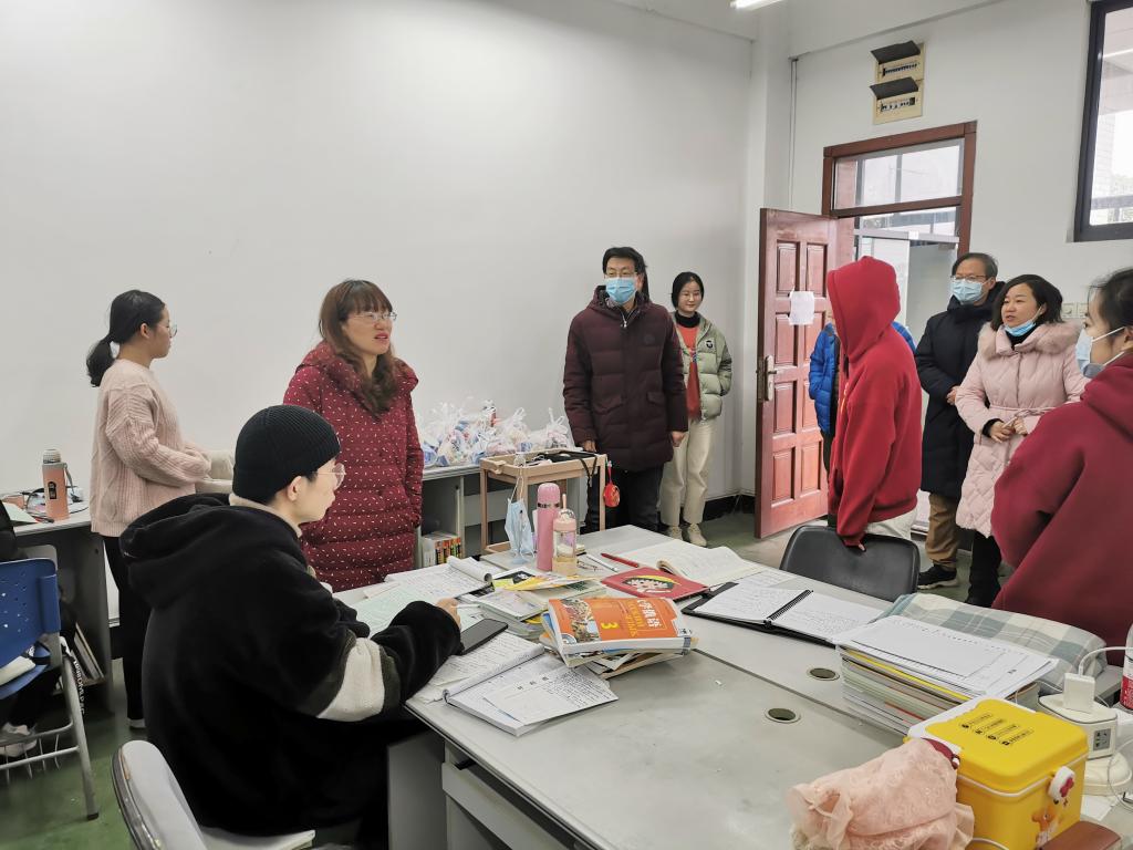 2021年全国硕士研究生招生考试即将到来,为鼓励考研同学一鼓作气继续奋战,12月18日上午,学院院长谭燕保、党委书记胡中原、副院长柯群胜、党委副书记王芳及2017级辅导员卫周瑶前往崇文楼三楼学院考研自习室,慰问正在辛苦备战的2017级考研学子们。