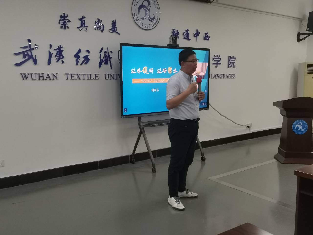 刘园美书记结合自身学生工作实践,以《以本促研以研带本》为题,从研究生打卡和电信诈骗案例,提出对研究生进行主题教育的必要性,以红线和蓝线形象比喻主题教育的底线和延展,进而阐述如何发挥班主任的作用,牵住“思想”的牛鼻子,介绍适应形势,守好网络宣传阵地的具体做法,最后引用发展心理学家爱利克·埃里克森的观点,谈了六点工作体会。