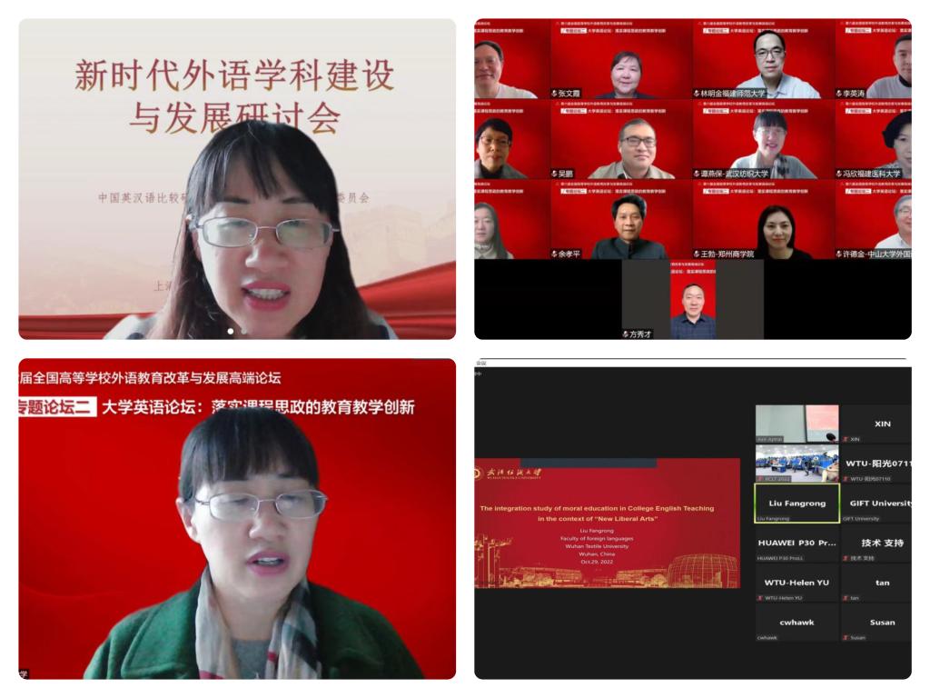 六、应邀参加国际、国内学术交流并做主旨报告或主旨发言10人次,学院教师学术影响力得到新彰显。3月,谭燕保在第六届全国高等学校外语教育改革与发展高端论坛做“英语教育中的国家意识和国际视野”主题报告;6月,谭燕保在新时代外语学科建设与发展研讨会做“社会服务的williamhill中国方案”专题报告;11月,谭燕保在第五届外语学科发展论坛暨新时代外语人才培养全国研讨会做“英语专业人才培养的整体性思维”主题报告;10月,刘方荣、吴志杰在2022国际语言教学跨学科会议分别做主旨报告;12月,陈芬在新世纪中国比较文学与世界文学发展新趋势研讨会做主旨发言。此外,积极推进各类虚拟教研室、学术共同体活动,其中与南开大学合作的 “赋权增能”虚拟教研室教研活动尤其活跃,教师在其公众号平台发稿8篇,很好地展示了我院专业特色及教师风采。