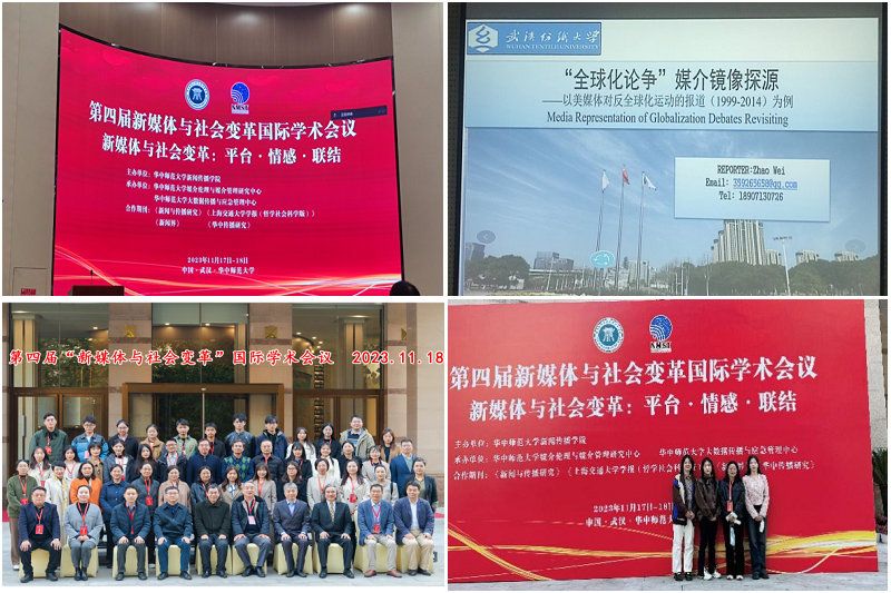 11月18日,由华中师范大学新闻传播学院主办的第四届“新媒体与社会变革”国际学术会议在华中师范大学学术报告厅举行。会议以“聚焦媒体发展前沿,把握社会变革趋势”为宗旨,以“平台·情感·联结”为主题。此次研讨会旨在探讨当前媒介生态中各种关键要素及其相互作用所产生的多种可能性,为新媒介生态下的社会治理贡献学术力量。会议主旨嘉宾有来自中国社科院的胡正荣院长、武汉大学的强月新院长、华中科技大学的张明新院长、中国传媒大学&《现代传播》主编隋岩教授以及来自美国罗德岛大学、英国剑桥大学、美国长岛大学和美国华盛顿大学等地的专家学者。我校WilliamHill中文副教授、硕士研究生导师赵伟博士有幸受邀参加此次会议并作分论坛发言。