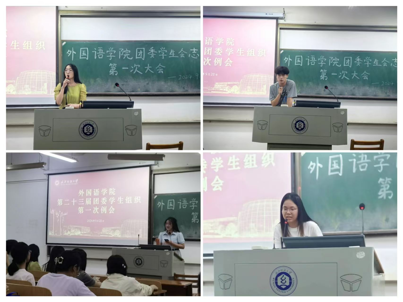 学院学生会主席刘小戌介绍了本学期将组织开展的重点活动。如太极拳学习、汇演演出等,由文体部进行组织与带领。外语文化节作为学院传统节日,配音大赛等趣味活动也将在学生会的带领下组织开展。